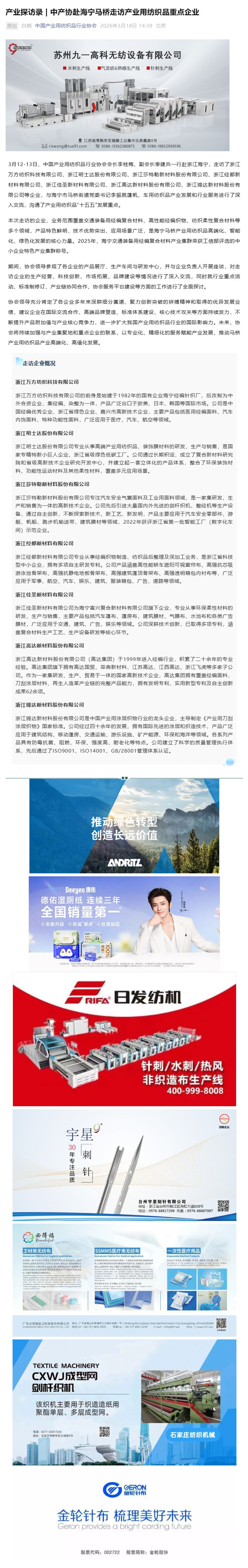 产业探访录 | 中产协赴海宁马桥走访产业用纺织品重点企业