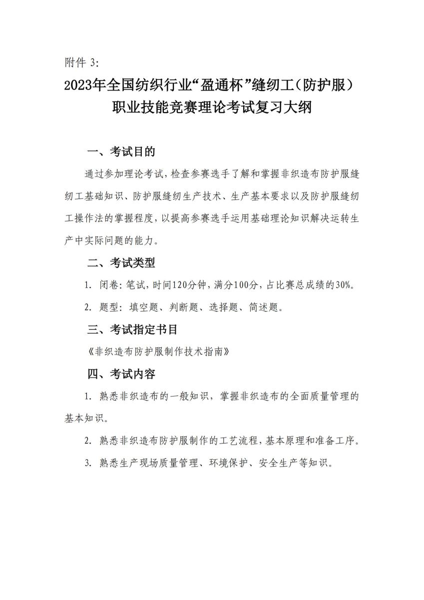 附件 3:2023年全国纺织行业“盈通杯”缝纫工(防护服)职业技能竞赛理论考试复习大纲