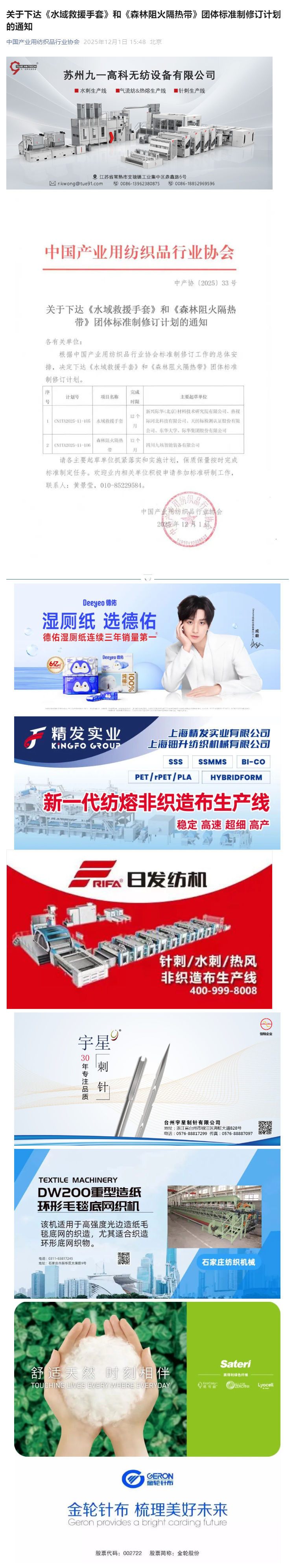 关于征集2026年度产业用纺织品与非织造布领域标准化需求的通知
